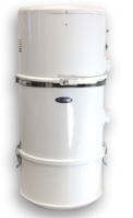Den här centralenheten är en förfinad och vidareutvecklad variant av vårt allra första aggregat från 1998. En robust och väl beprövad enhet med 2-stegs sugmotor av by-pass typ och passar de allra flesta hus och lägenheter. Placeras i ventilerat utrymme. Dammavskiljning via engångs filterpåsepåse i papper eller mikrofiber. Ett veckat patronfilter tar hand om de allra finaste partiklarna och ser till att skydda fläkten om en påse skulle gå sönder. Hela enheten är tillverkad i 1,3mm stålplåt med vit ugnshärdad pulverlackering. Anslutningar för sugledning från både höger alternativt från vänster. Byte av dammpåse från ovan.